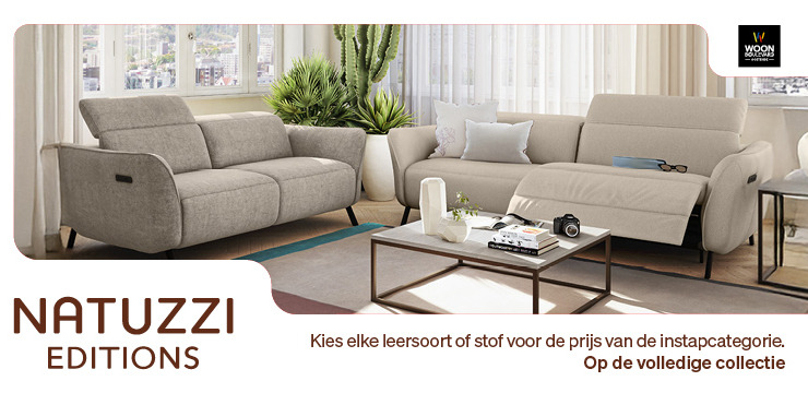 Tijdens deze exclusieve promotie kies je elk leder of stof voor de prijs van de goedkoopste categorie. Zo geniet je van het luxueuze design en de Italiaanse klasse van NATUZZI, zonder compromissen.