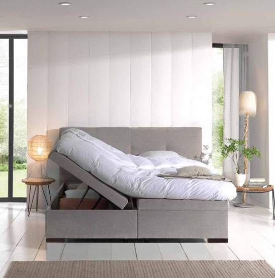 Kofferbed Maya is mooi én praktisch ! Met korte houten pootjes, een zacht hoofdbord en een strakke belijning houdt dit bed het midden tussen robuust en elegant. De minipocketveren bieden maximaal comfort en stevige ondersteuning. Ze zorgen ook voor een goede ventilatie zodat je matras koel aanvoelt en langer meegaat. In de koffer onderaan kan je bovendien een hoop spullen kwijt. Praktisch toch? Het kofferbed gaat zijdelings open. Zo heb je twee aparte opslagruimtes. Maya is standaard beschikbaar in twee afmetingen : 160x200cm en 180x200cm.