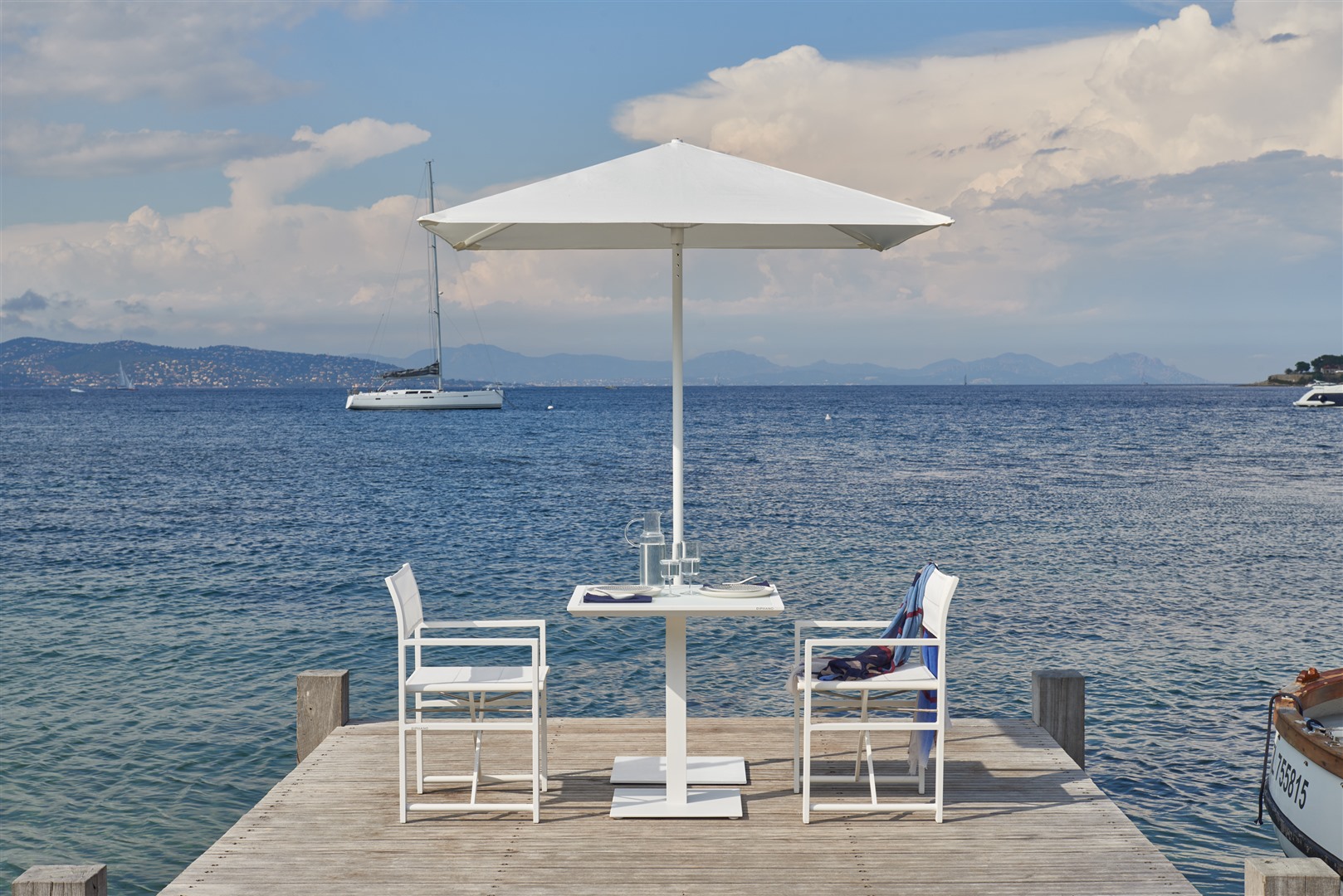 De Alexa stoelen zijn eenvoudig, plooibaar én stapelbaar. Deze strakke, minimalistische stoelen combineren een licht aluminium frame met de duurzame outdoorstof Batyline.