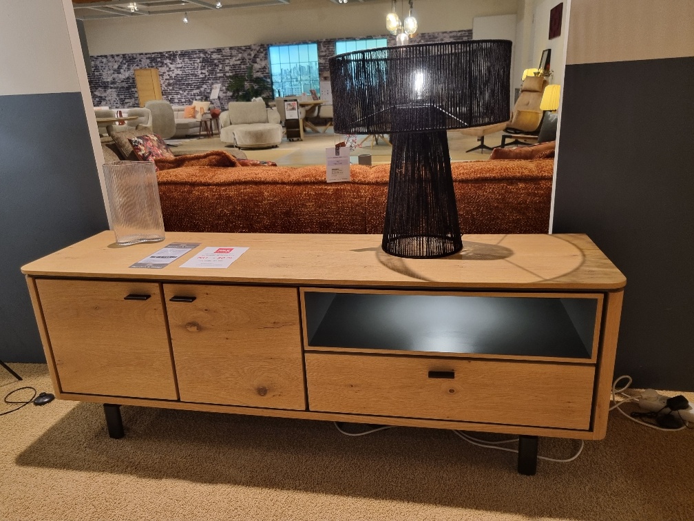Deze lowboard uit de Livada collectie is een fraaie blikvanger in het interieur. Opvallend is het strakke lijnenspel dat wordt versterkt door de metalen accenten. Deze lowboard is 170 cm breed, heeft 2 deuren, 1 klep en 1 niche met ledverlichting. De fraaie tekening van het wild eiken fineer komt goed tot zijn recht, dankzij de kleur "natural". Hierdoor blijft het wild eiken zijn natuurlijke uitstraling houden.